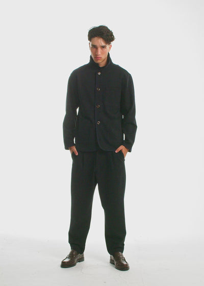 Soft to the touch. Hard on the competition. Cut from a velvet-hand fabric that feels as refined as it looks, this piece carries quiet confidence. The subtle trim along the placket and collar frames the silhouette. The luxurious corozo buttons are carved from the nut of a South American palm tree. Each one is polished by hand, giving a subtle sheen and natural variation. The relaxed structure and curved collar bring a sense of understated sophistication. Wear the collar up or down depending on your mood or your defiance.