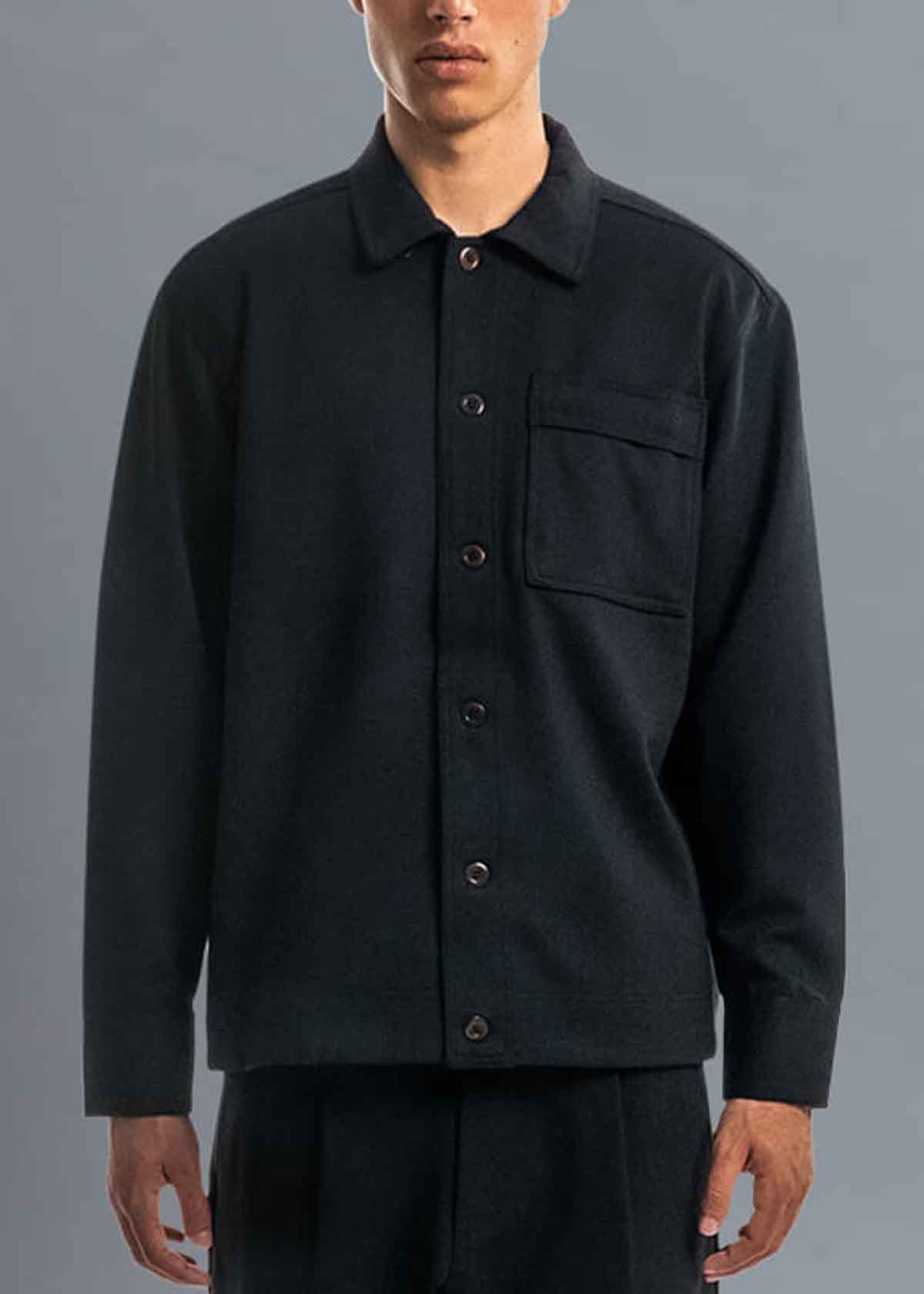 Jet set ready. Travel in absolute style. Cut from a soft, flexible compressed knit that moves in four directions. Wrinkle resistant. Easy to clean. Incredibly comfortable. A clean, structured silhouette. Boxy fit. Reinforced seams. Utility chest pocket. Become a chic modern-day traveler, whether on the plane or off it.