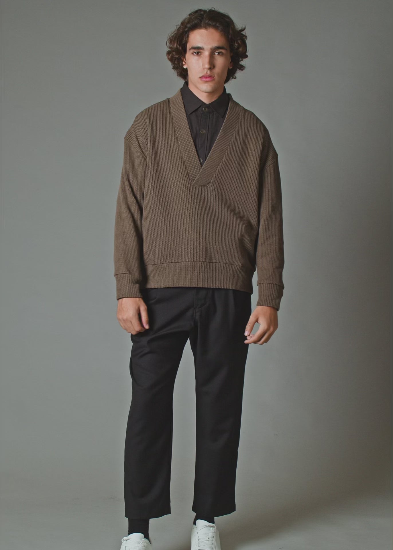 The luxurious comfort of this plush knit V-neck is expertly crafted with a soft ribbed fabrication. The wide neckline frames layered pieces, inviting just the right amount of contrast when paired with a crisp shirt underneath.