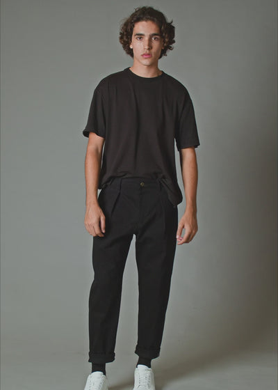 Our 14oz Black Selvedge Denim trousers are crafted from single-wash raw denim. This specialized washing process gently softens the raw denim, enhancing comfort without compromising the fabric's robust quality. Utilizing double-soaked dyed Japanese fabric, we've constructed these trousers in our signature Boxer-Fit, offering a sophisticated alternative to the typical 5-pocket jeans. The denim is woven on a small shuttle loom, which requires a skilled operator. It holds historical significance because the technique predates mass-produced textiles. This meticulous process ensures each pair is not just a garment but a piece of art with a story, giving you something to be proud to wear.