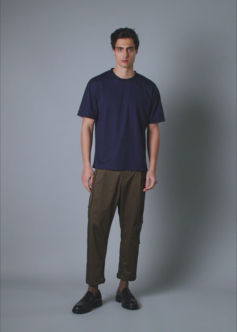 This tee has a relaxed fit and is made from a heavier 200-gram organic long-staple cotton fabric. The Egyptian Long-staple cotton has longer fibers (appx 55mm or double typical cotton) and is spun into a premium, smooth yarn. The cotton is grown in the uniquely moist climate of the Nile River Valley, requiring precise cultivation techniques to ensure its high quality. This tee is exceptionally soft, breathable, and durable. The design is full of subtle yet intricate details, showcasing the highest level of knit craftsmanship. This includes side vent action gussets. It is meant to be versatile, ready to be dressed up or styled for everyday wear.