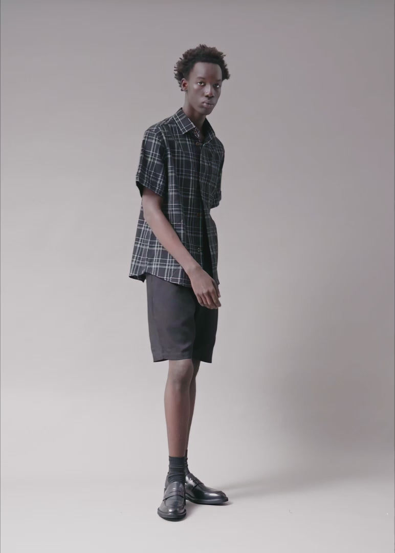 The Tron 2-D Plaid Black shirt is crafted from soft cotton woven with a fine windowpane pattern. It reads black, but it offers more depth than basic black. Built with a reinforced two-piece construction and precision stitch placement to resist rollover and maintain structure. It stays sharp and aligned all day, so you never have to fix your collar.